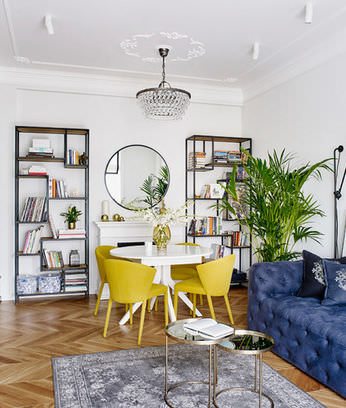 Ремонт квартиры с видом на гостиницу “Украина” шёл много лет. Над интерьером трудились разные дизайнеры и строительные бригады. По словам хозяев, самым сложным оказался этап выпрямления стен.
