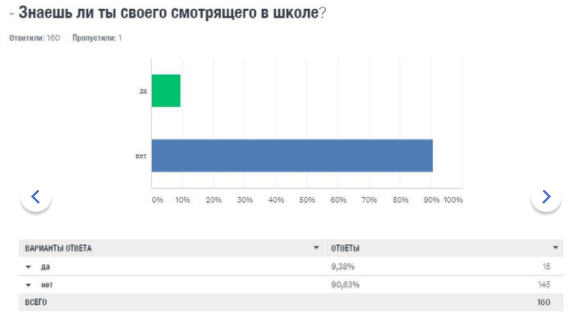 О том, что подростки-смотрящие наводят свои порядки, сообщают 20% учеников, при этом 9 процентов знают своего «школьного смотрящего».